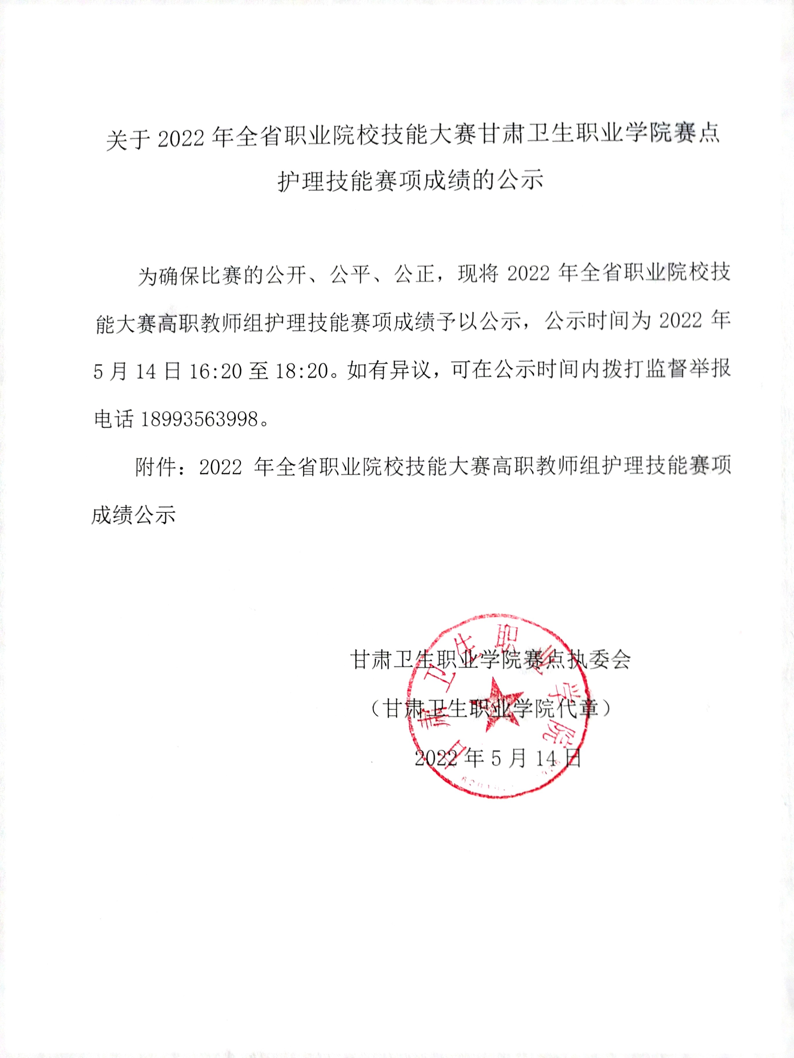 關(guān)于2022年全省職業(yè)院校技能大賽甘肅衛(wèi)生職業(yè)學(xué)院賽點護理技能賽項成績的公示
