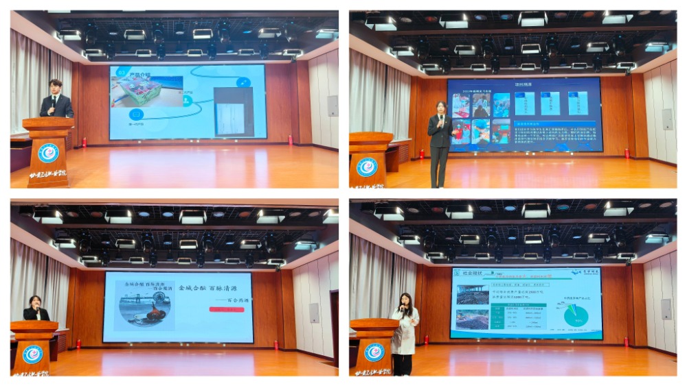 該項比賽自啟動以來,學(xué)院廣泛宣傳,學(xué)生積極參與。共有56個作品參賽,經(jīng)過學(xué)院初賽,選出15個作品參加復(fù)賽。比賽采用“路演+答辯”的形式,各團(tuán)隊通過PPT展示、產(chǎn)品演示等方式,詳細(xì)闡述項目背景、市場前景及社會價值。評委圍繞創(chuàng)新性、可行性、商業(yè)模式等維度進(jìn)行提問和點評,現(xiàn)場互動熱烈。