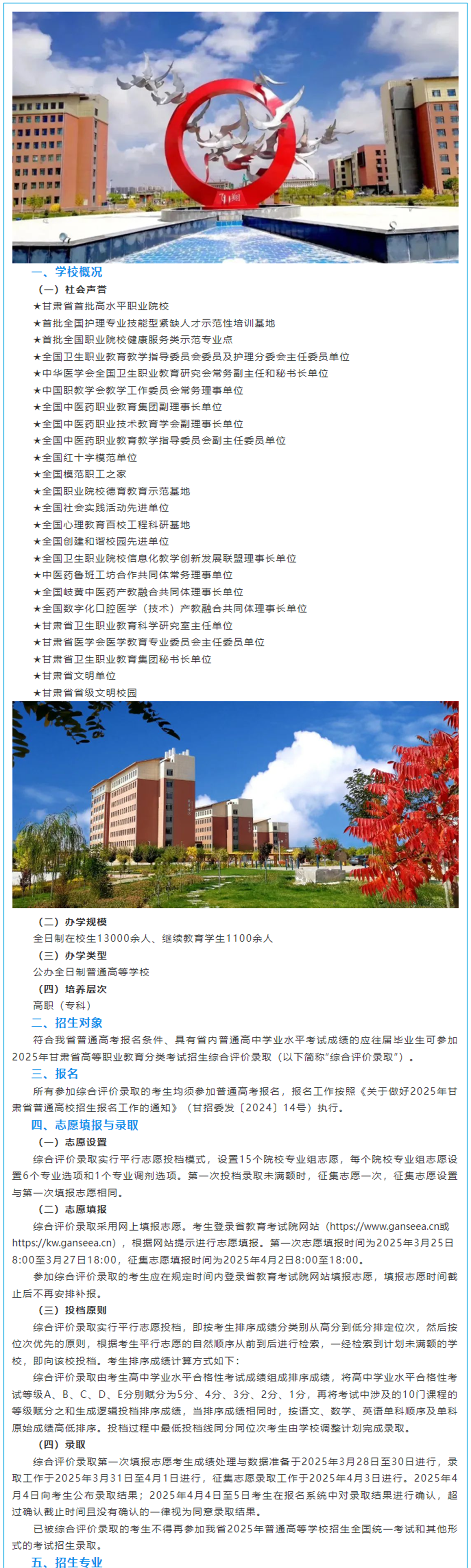 甘肅衛(wèi)生職業(yè)學(xué)院2025年普通高中生綜合評(píng)價(jià)錄取招生簡(jiǎn)章