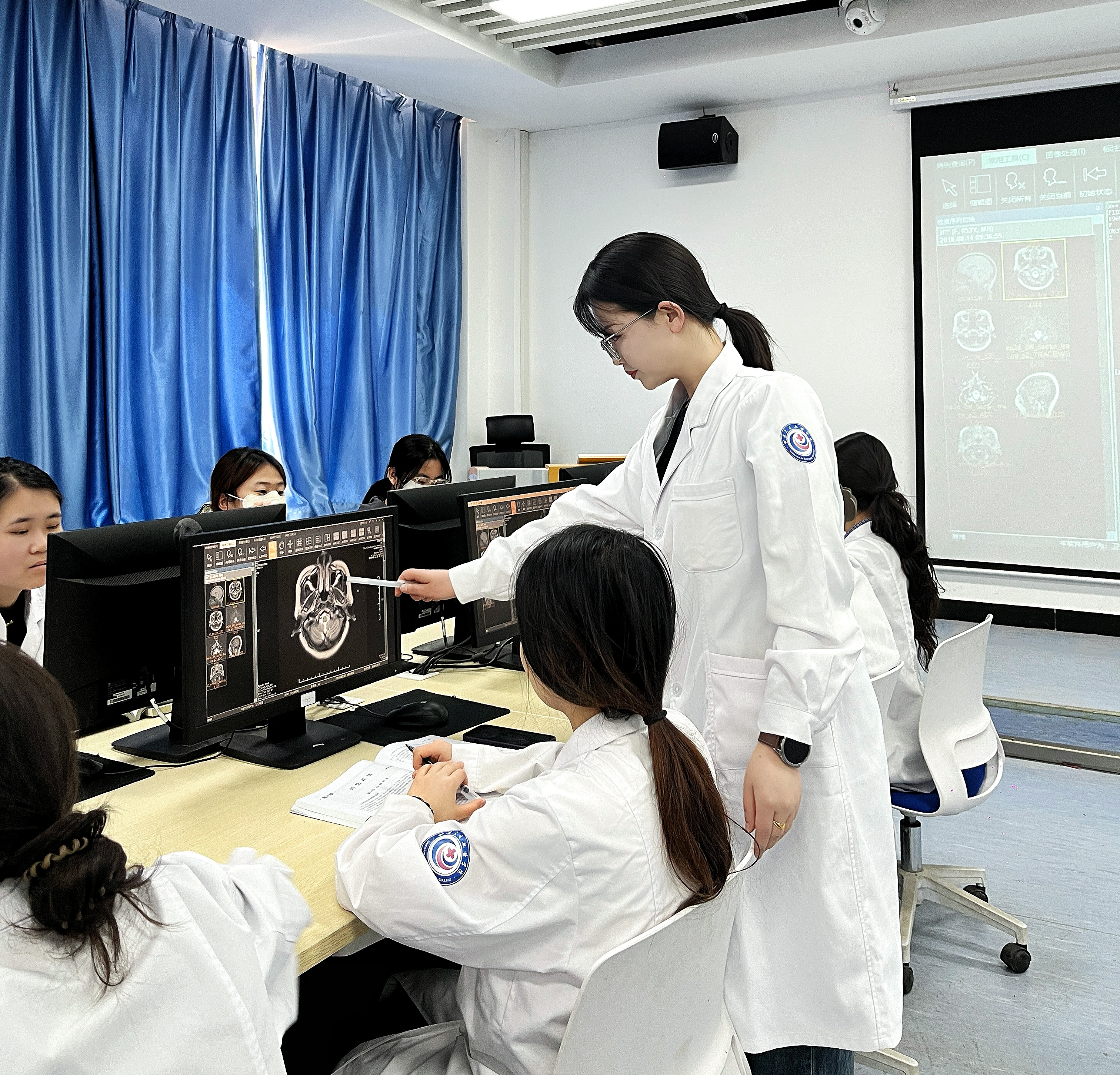 ♦ 李清華老師帶領(lǐng)同學(xué)們在Pacs實(shí)訓(xùn)室學(xué)習(xí)醫(yī)學(xué)影像診斷學(xué) ♦