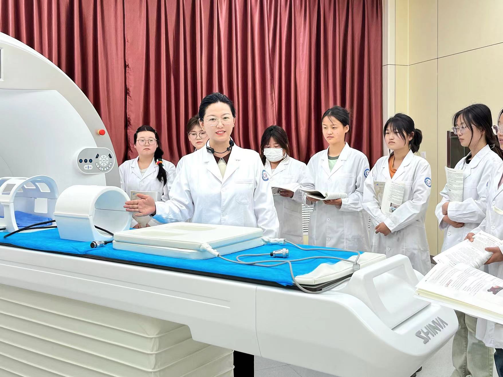 ♦ 徐琬茹教師帶領(lǐng)同學(xué)們在MRI實(shí)訓(xùn)室講解《MRI檢查技術(shù)》基礎(chǔ)知識(shí) ♦