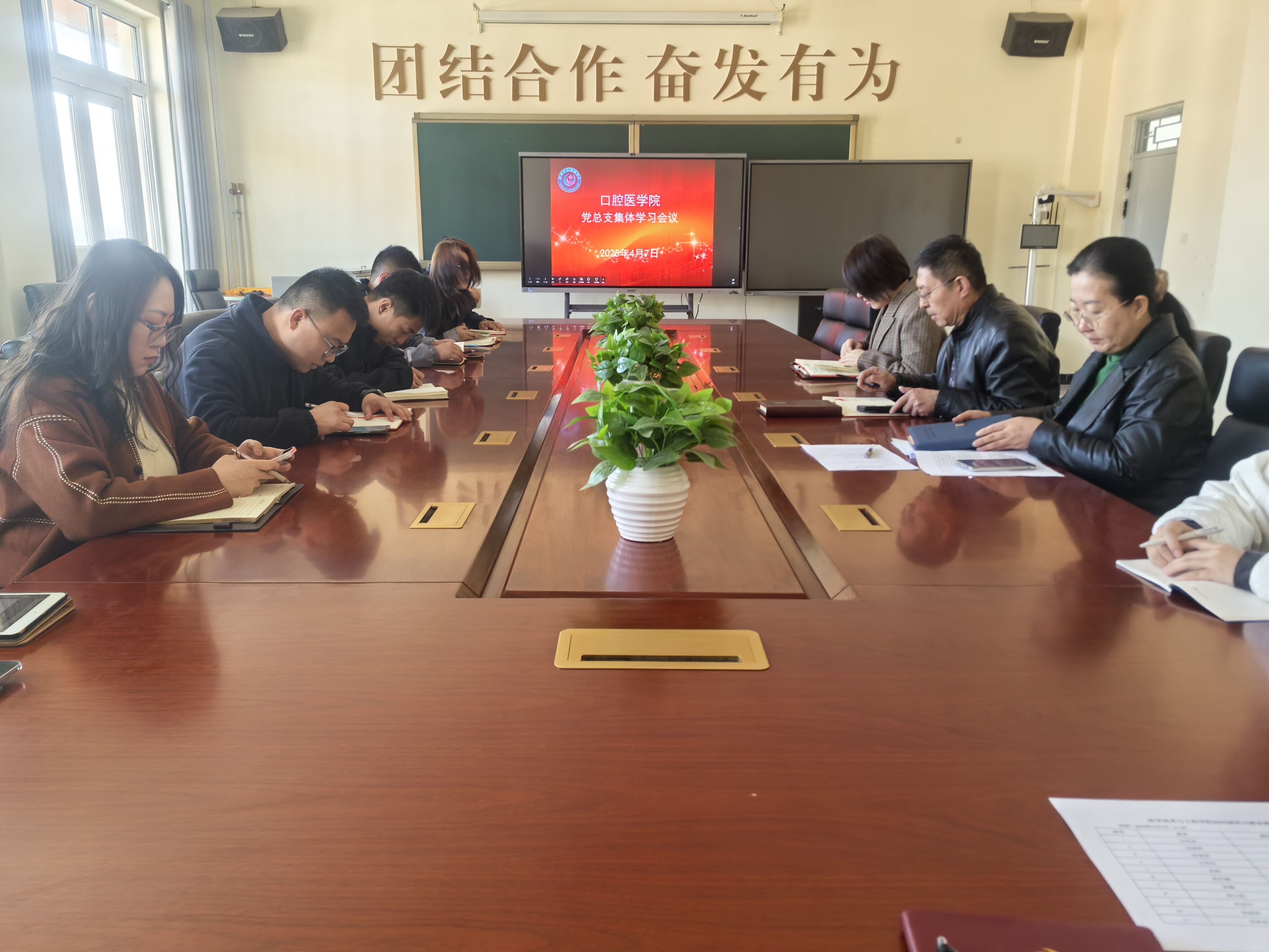 4月7日,口腔醫(yī)學院召開黨總支集體學習會議。王祖華書記帶領大家集中學習了習近平總書記4月3日參加首都義務植樹活動時的重要講話精神,強調要立足醫(yī)學教育實際,將生態(tài)文明理念融入教學科研和醫(yī)療服務。會上結合“中央八項規(guī)定實施細則”專題學習,進一步嚴明紀律要求,規(guī)范教學管理,深化全面從嚴治黨與業(yè)務發(fā)展的有機融合‌。